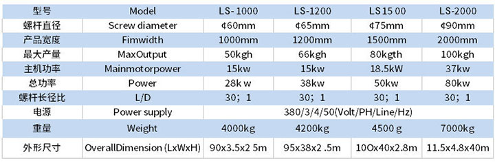 螺桿數(shù) | 單螺桿 | 螺桿直徑 | 75(mm) | 最大擠出直徑 | 1600(mm) |